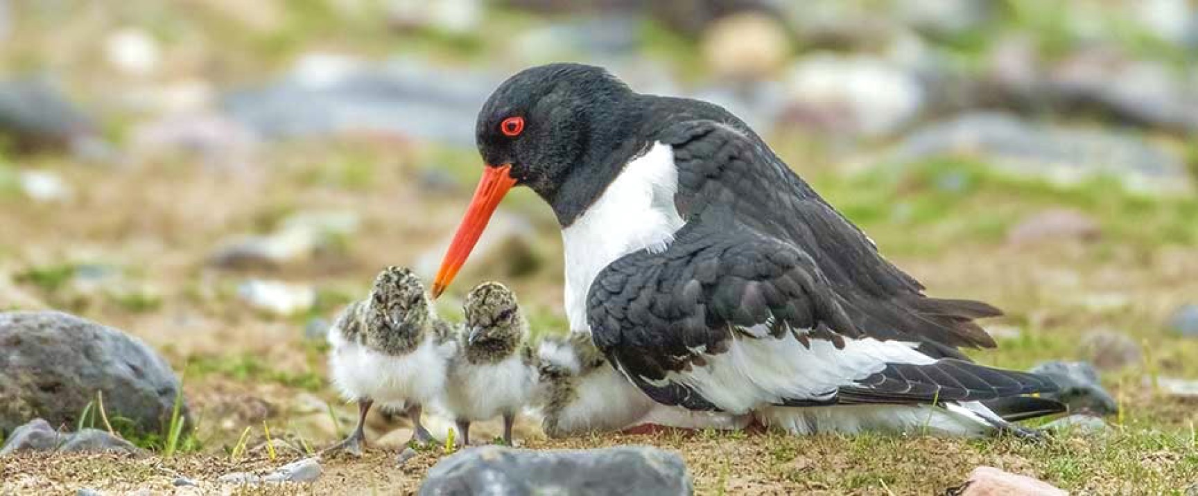 Der Austernfischer ist sicherlich der lauteste Vogel in der Flussmündung. Man muss sich nur bei Ebbe ein wenig auf den Wattflächen vorwagen. Durch das knallige Rot seiner Augen, Beine und des Schnabels erkennen wir den Küstenvogel sehr schnell.