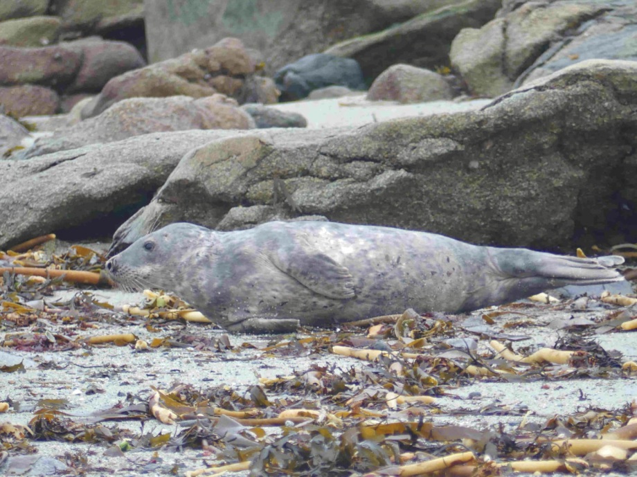 Die hinteren Flossen haben den Vorteil, dass sie unter den Körpergeklappt werden können, wodurch sich der Seelöwe an Land leicht fortbewegen kann.