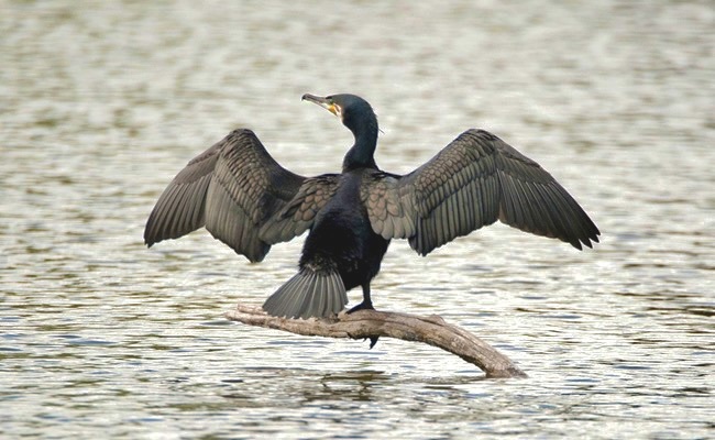 Auf einem Felsen sitzend breitet der Kormoran seine Flügel aus, um sie zu trocknen. Das Bild des regungslos dasitzenden Vogels ist immer wieder erstaunlich. Der Fischfresser ist ein ebenso guter Taucher wie Schwimmer und beherrscht die Kunst des Fischens. So sehr, dass dieser Fischfresser sich in der Unterwasserwelt nicht nur Freunde gemacht hat.