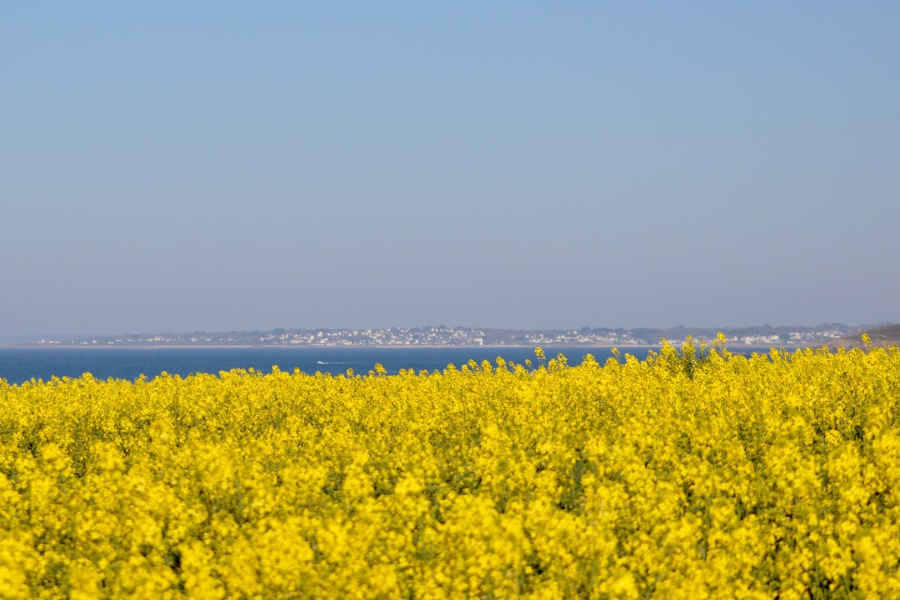 Entlang der mit Rapsfeldern gesäumten Küste erreichen wir in Richtung Süden Plage Plozévet.