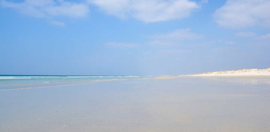 Ein 5 km langer Sandstrand entlang nach Osten,