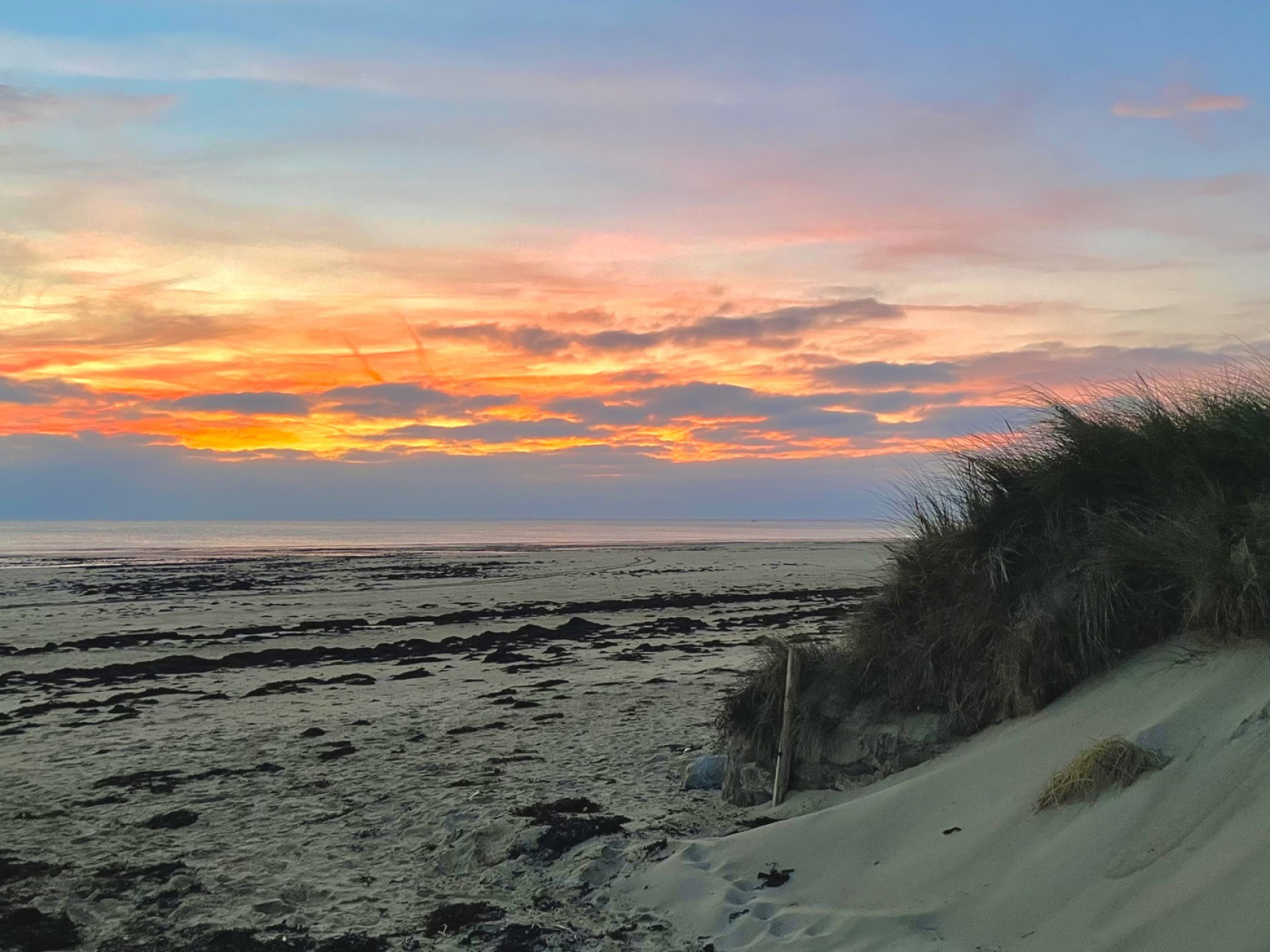 Zwischen Meer und Salzwiesen befinden sich nur die Dünen, d.h. bei einem Koeffizienten von über 95 werden die Wiesen vom Meer überflutet. Im September 2024 hatten wir bei Vollmond einen Koeffizienten von 114.
