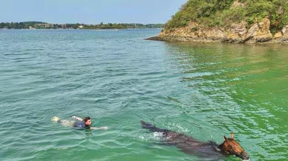 Während die meisten Traber auf einer Sandbahn trainieren, schwimmen die Pferde von Charles Erik Chalmel in der Mündung der Rance in der Nähe von Saint-Malo. Eine einzigartige Methode, die zahlreiche Vorteile für das Tier und seinen Begleiter hat.