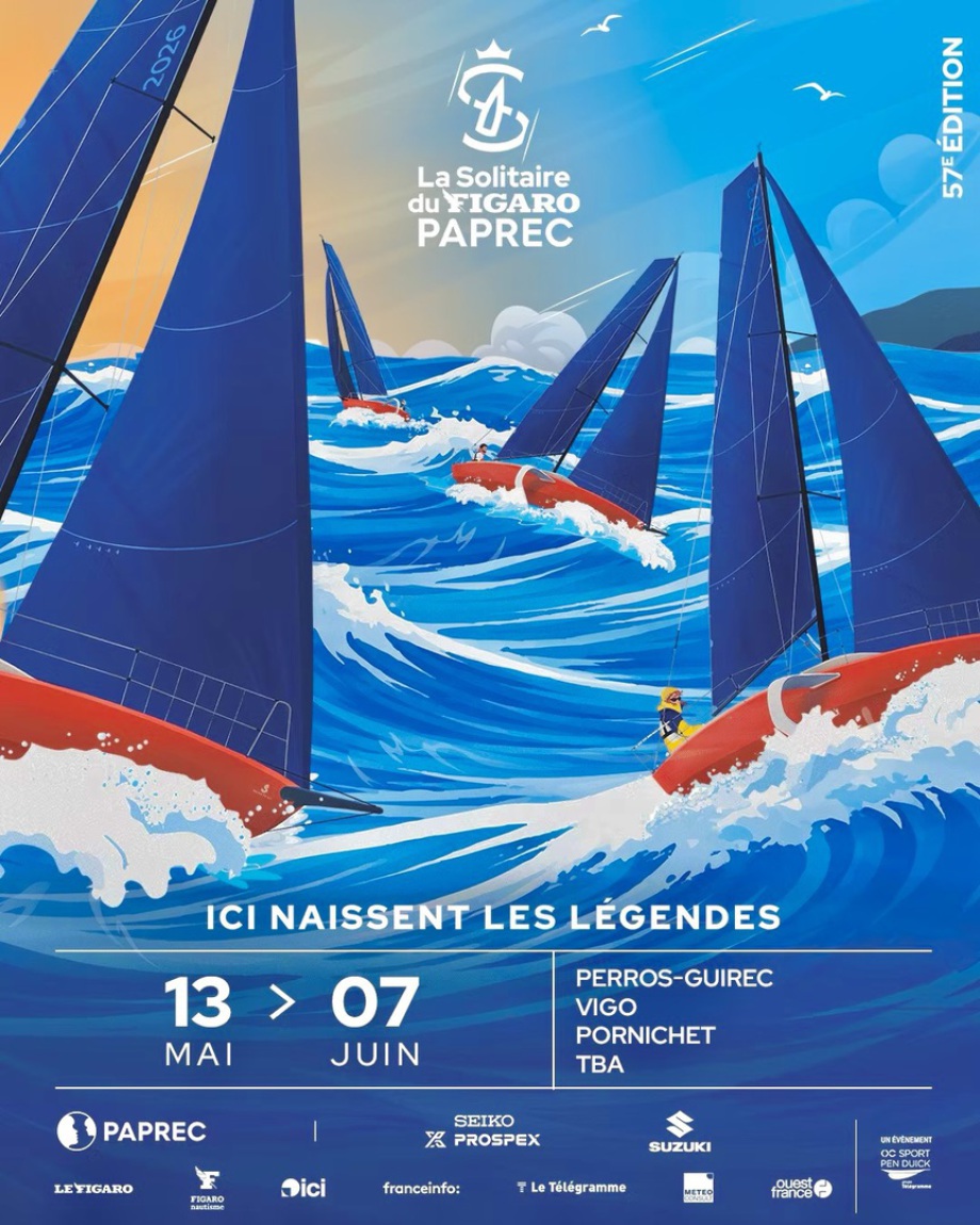 Die Kandidaten für die Ausgabe 2026 konnten sich mit Yann Chateau, dem Rennleiter von La Solitaire du Figaro Paprec, austauschen und begannen, sich auf die Strecke vorzubereiten, auf der sie vom 17. Mai bis zum 7. Juni zwischen der Nordküste der Bretagne und der Normandie über Vigo/Spanien und Pornichet gegeneinander antreten werden. Ein ereignisreicher Vormittag, an dem sie auch das Plakat dieser neuen Ausgabe entdecken konnten.