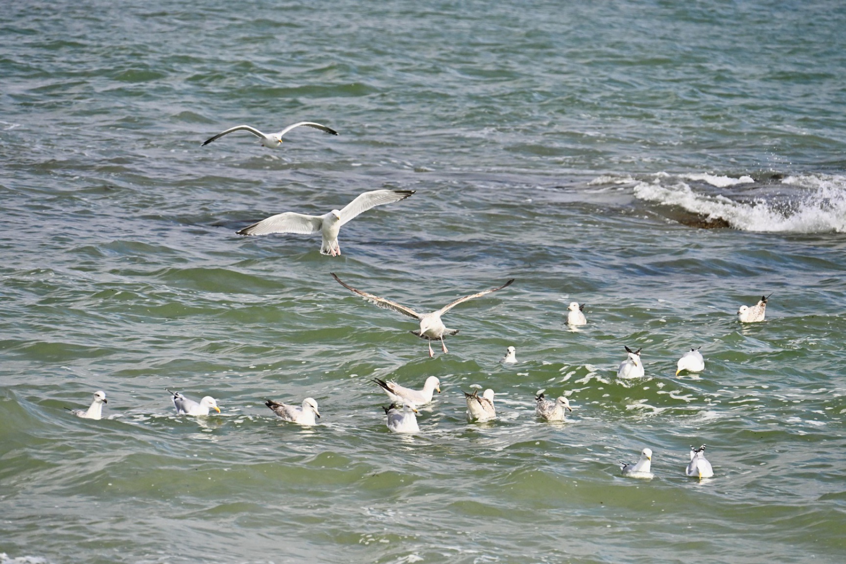 Die meisten Meeresvögel ernähren sich von kleinen Fischen oder Zooplankton. Ihre Ernährung umfasst eine Vielzahl von Beutetieren unterschiedlicher Größe und Art, je nach Größe des Meeresvogels. Es ist anzumerken, dass sie bei der Aufzucht ihrer Küken anspruchsvoller sind. Lummen und Papageientaucher beispielsweise füttern ihre Jungen ausschließlich mit Fisch. Die Ernährung ist oft unregelmäßig, abhängig von den Wetterbedingungen und dem Vorhandensein von Beute, was erklärt, warum Meeresvögel daran gewöhnt sind, zwischen Zeiten des Überflusses und der Knappheit zu wechseln. Viele Seevogelarten profitieren in vollem Umfang von den Abfällen aus der Fischerei. So kann man beeindruckende Formationen von Möwen im Kielwasser von Trawlern beobachten, die ihre Netze einholen, was für viele Arten zu einer Lebensweise geworden ist.