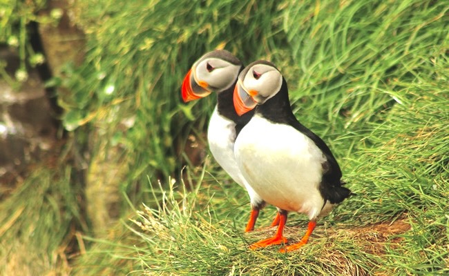 Der Papageientaucher/Fratercula arctica ist ein naher Verwandter des Pinguins und lebt ausschließlich im Nordatlantik.