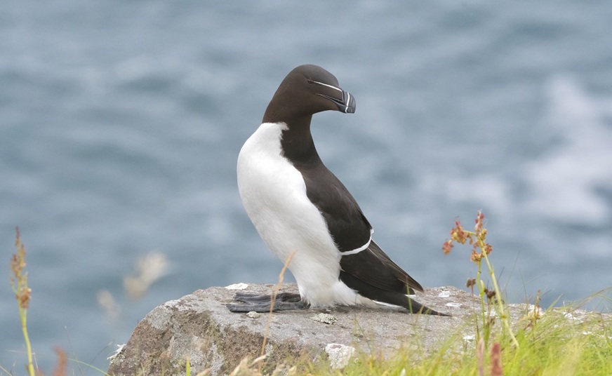 Auf diesem Foto erkennen wir den Pinguin. Nach dem Aussterben des Großpinguins im Jahr 1844 ist er das letzte noch lebende Mitglied der Familie der Alkenvögel auf unserem Planeten. Dieser Vogel, der oft mit dem Tordalk verwechselt wird, ist ein faszinierendes Tier, das man gerne beobachtet. Leider ist er mit einigen wenigen Paaren in der Bretagne die am stärksten bedrohte Brutvogelart Frankreichs.