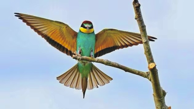 Der Name des Bienenfressers leitet sich von seiner Ernährung ab. Der insektenfressende Vogel zeigt eine deutliche Vorliebe für Wespen, Bienen, Hummeln und Hornissen. Der Vogel ergänzt seinen Speiseplan mit anderen Insekten wie Fliegen, Libellen, Schmetterlingen, Heuschrecken, Zikaden, Motten, Termiten, Wanzen und Maikäfern. Der Europäische Bienenfresser jagt in der Luft, ähnlich wie eine Schwalbe. Von einem gut sichtbaren Sitzplatz wie Baum, Stromleitung oder Zaun aus späht er nach Beute, jagt sie, schnappt sie sich mit dem Schnabel und landet dann auf einer harten Oberfläche. Dort schlägt er das Insekt mit einigen Schnabelhieben gegen einen Stein oder einen Ast, um es zu betäuben. Obwohl er unempfindlich gegenüber den Stichen ist, zieht es der Europäische Bienenfresser vor, sein Opfer zu neutralisieren, bevor es seinen Stachel einsetzt, und schluckt es dann, indem er den Kopf nach hinten neigt.